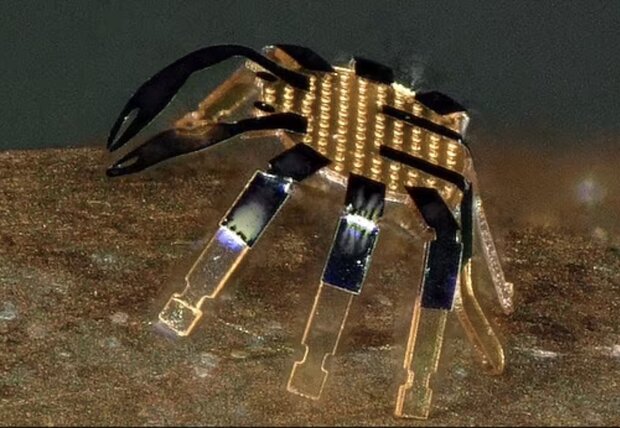 محققان یک خرچنگ رباتیک ابداع کرده اند که با ذره بین می توان آن را دید. این ربات که با تاباندن پرتو لیزر می تواند حرکت کند، از کک کوچکتر است.