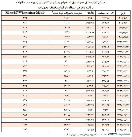 همانطور که در جدول بالا مشاهده میشود، در فصل تابستان که فقط مزارع غیرمجاز به فعالیت خودشان ادامه دادهاند، اگر همه تجهیزات غیرمجاز را از نوع پرمصرف m۳x فرض کنیم مصرف برق استخراج رمزارز بیتکوین کشور از ۷۰۰ مگاوات فراتر نرفته است. اگر فرض کاملاً بدبینانه این باشد که تخمین دانشگاه کمبریج از مصرف برق ایران بهدلیل اندازه نمونهاش دارای خطا باشد؛ با فرض اینکه ایرانیان سه برابر بیشتر از تخمین دانشگاه کمبریج در استخراج بیتکوین فعال بودهاند، مصرف برق استخراج بیتکوین ایران از ۱۸۴۵ مگاوات فراتر نمیرود. اما کسری تراز برق ایران ۱۴ هزار مگاوات تخمین زده شده است.