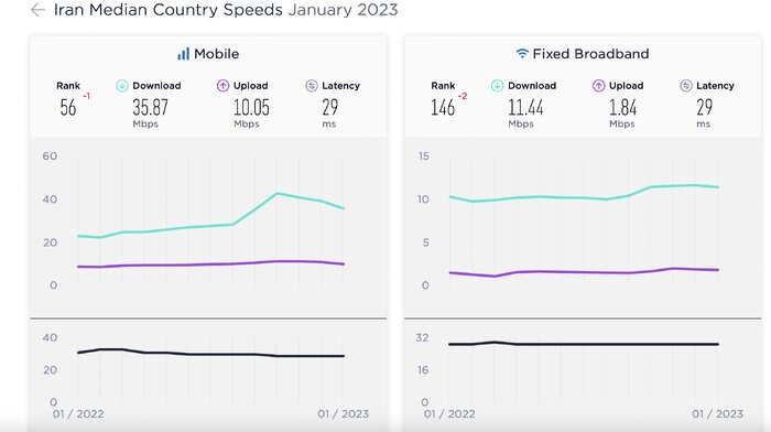 گزارش ایرنا از کاهش سرعت اینترنت ثابت و سیار ایران