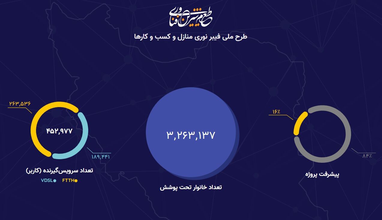 ایجاد بیش از ۲.۵ میلیون پوشش فیبرنوری منازل و کسبوکارها در دولت سیزدهم