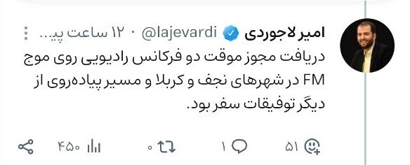 «دو هفته پیش به دعوت برادر و هم‌مدرسه‌ای دوران نوجوانی آقای علی موید، رئیس رگولاتوری عراق به این کشور سفر کردم. با وزیر محترم ارتباطات عراق هم دیدار داشتیم. در این سفر مدیرعامل محترم شرکت زیرساخت و نمایندگان اپراتورها هم‌سفر بودند.