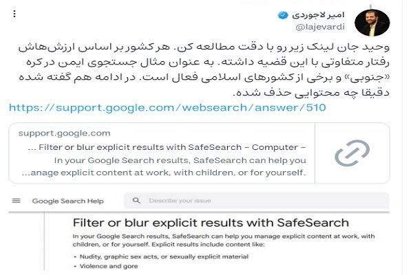 فعال بودن جستجوی ایمن گوگل در کره جنوبی و برخی کشورهای اسلامی