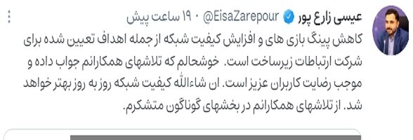 زارع پور خبر داد؛ کیفیت شبکه ارتباطی روز به روز افزایش مییابد