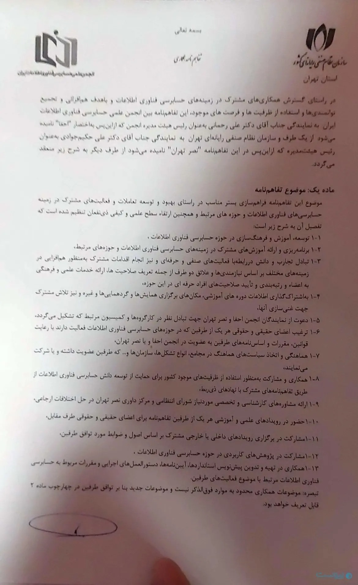تفاهم‌نامه همکاری نصر با انجمن حسابرسی فناوری اطلاعات ایران