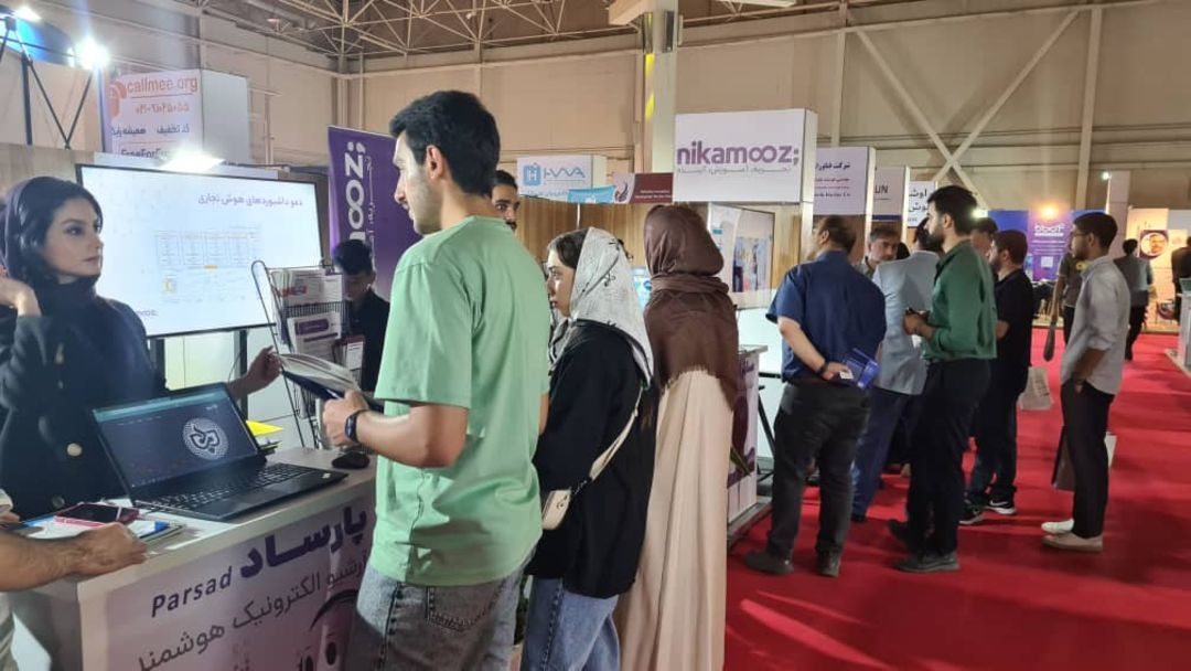 طبقه دوم میزبان استارتاپهای کوچکتر است. انجمن هوش مصنوعی ایران، کمیسیون هوش مصنوعی سازمان نصر و پارک علم و فناوری دانشگاه شریف هم در همین طبقه حضور دارند. غرفه شریف، بهویژه با حضور تیمهای متعدد دانشجویی و پژوهشگران باسابقه و متخصصان این حوزه، یکی از بخشهای پرشور و پرانرژی این سالن شده است؛ گفتوگو با متخصصان، برای بسیاری از بازدیدکنندگان حکم یک کلاس آموزشی زنده را دارد.