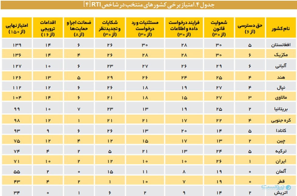 بررسی و تحلیل وضعیت رتبه کشور در شاخص «حق دسترسی به اطلاعات( RTI)»