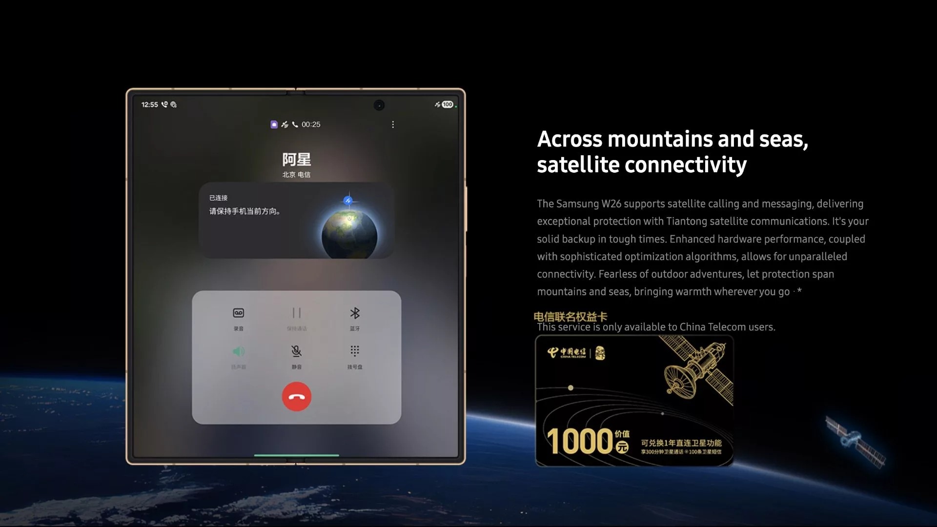 نسخه ویژه گلکسی زد فولد 7 که با نام W26 برای بازار چین معرفی شده است، از ارتباط ماهوارهای مستقیم پشتیبانی میکند.