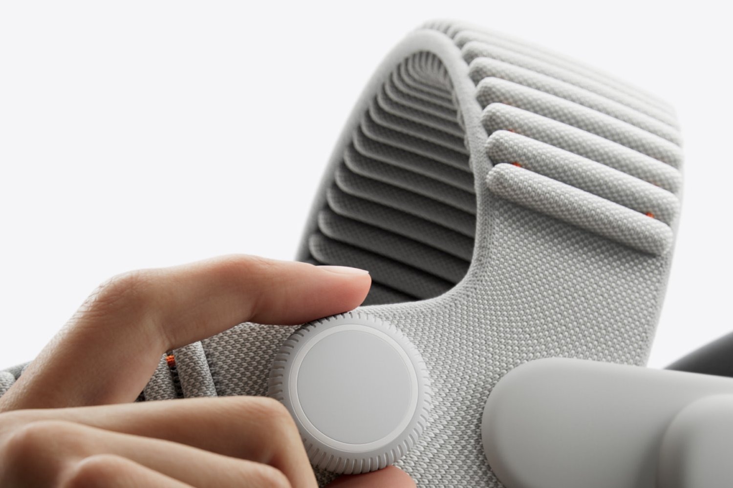 اپل در نسل جدید ویژن پرو، از بند Dual Knit Band استفاده کرده است که با ساختار بافتدار و وزن متعادل، فشار روی صورت را کاهش میدهد و تهویهی بهتری دارد. این بند با طراحی دوبخشی و تنظیمگر چرخشی دقیق، در سه اندازه عرضه میشود و حتی با مدل قبلی ویژن پرو نیز سازگاری دارد. ترکیب این طراحی با وزن متعادلتر دستگاه، استفادهی طولانیمدت از ویژن پرو را آسانتر میکند.