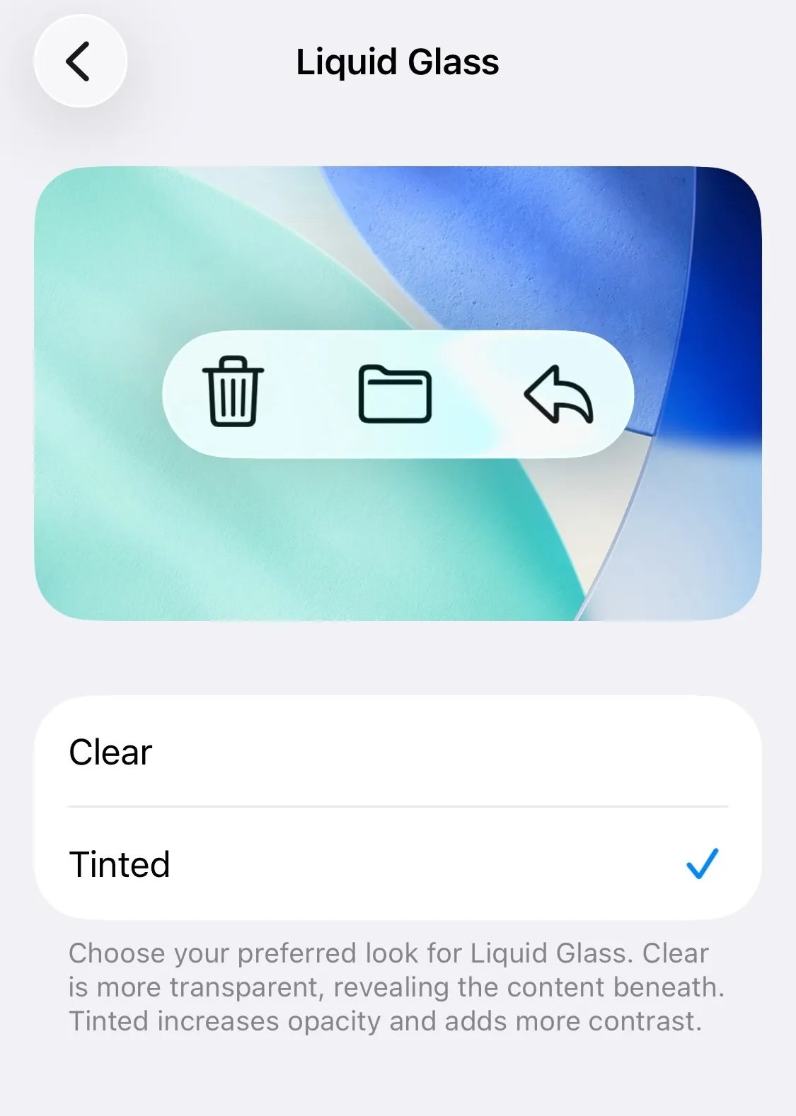 رابط کاربری Liquid Glass بزرگترین بازطراحی ظاهری سیستمعاملهای اپل از سال ۲۰۱۳ تاکنون به شمار میرود. اما مانند هر تغییر بزرگی، همه کاربران از آن راضی نبودند. برخی معتقد بودند که شفافیت بیشازحد این طراحی، خواندن متون در بخشهایی مانند نوتیفیکیشنها یا کنترلهای اپلیکیشن Apple Music را دشوار میکند.