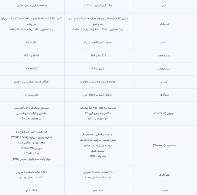 مقایسه گلکسی XR سامسونگ با ویژن پرو اپل