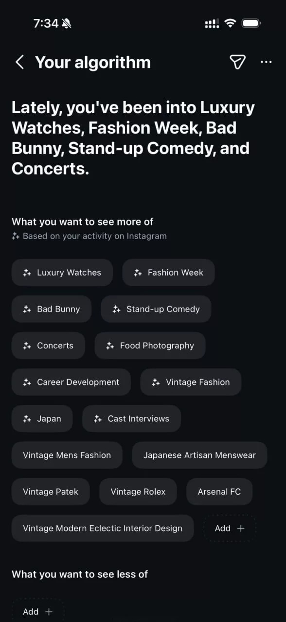 «امروز آزمایش روشی جدید را آغاز میکنیم که به شما این اجازه را میدهد تا الگوریتم اینستاگرام خود را با افزودن و حذف موضوعات بر اساس علایق خود تنظیم کنید. این ویژگی ابتدا در ریلز راهاندازی خواهد شد و به زودی به اکسپلور هم گسترش پیدا میکند.»
