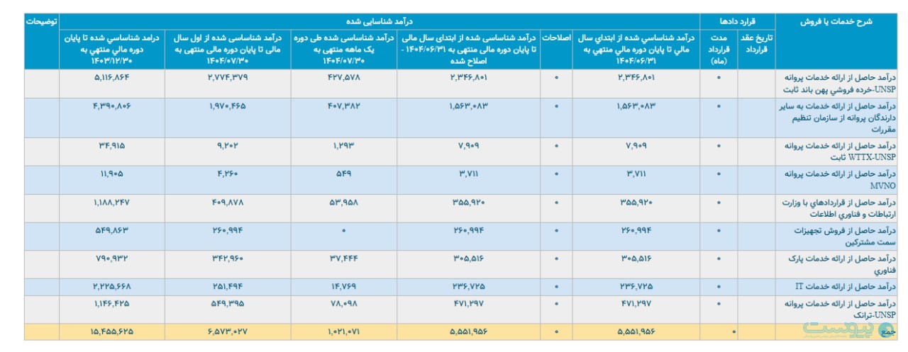 علت افزایش درآمد حاصل از ارائه خدمات به سایر دارندگان پروانه از سازمان تنظیم مقررات تماما مربوط به شناسایی خدمات رومینگ ملی فصل تابستان به اپراتور های همراه اول و ایرانسل است.