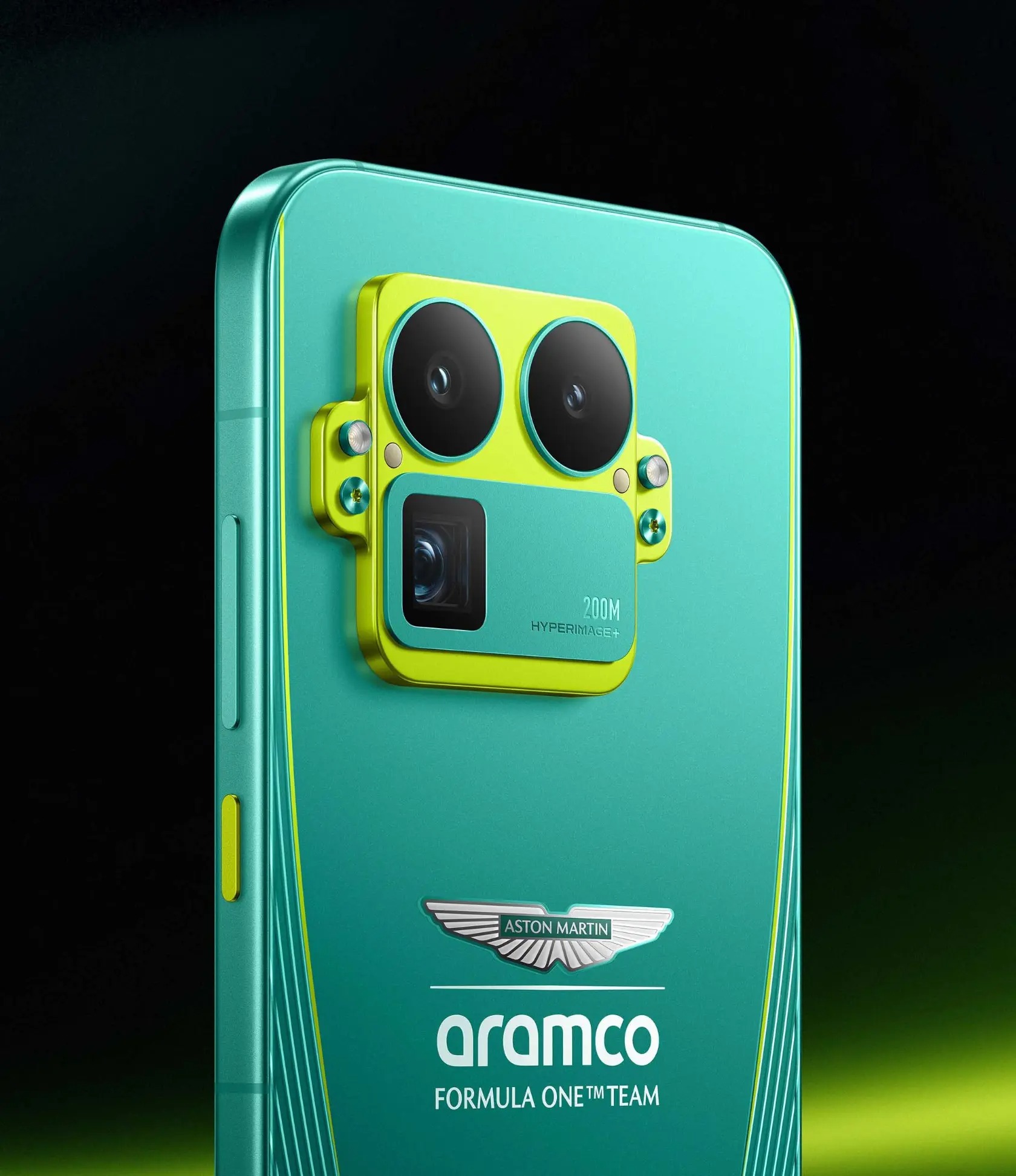 نسخهی GT8 Pro Aston Martin F1 Limited Edition بدنهای سبزرنگ دارد و در بخش پشتی آن، نشان بالدار استون مارتین و لوگو تیم فرمول یک آرامکو به چشم میخورد. طراحی جزیرهی دوربین نیز با طرح فیبر آرامید و جزئیات نئون زرد جلوهی اسپرتتری پیدا کرده است.