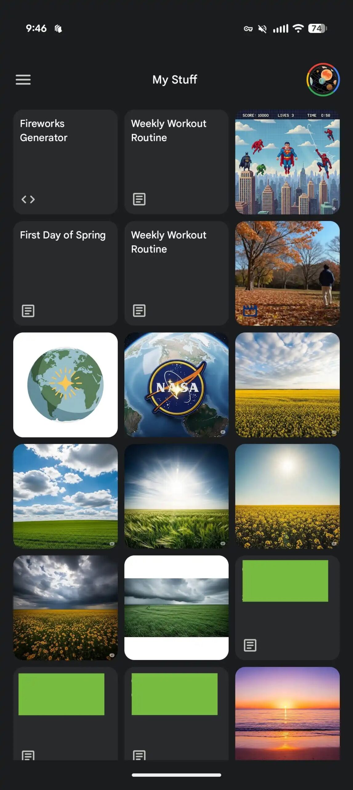 نسخه اندروید اپ جمینای با بازطراحی صفحه هوم، تم تیره سیاه‌رنگ و قابلیت جدید «My Stuff» برای مدیریت آسان آثار کاربران عرضه شده است. پس از آخرین بازطراحی در سپتامبر، برنامه جمینای اکنون با صفحه هوم جدید و رابط مکالمه تازه در اندروید عرضه شده است.