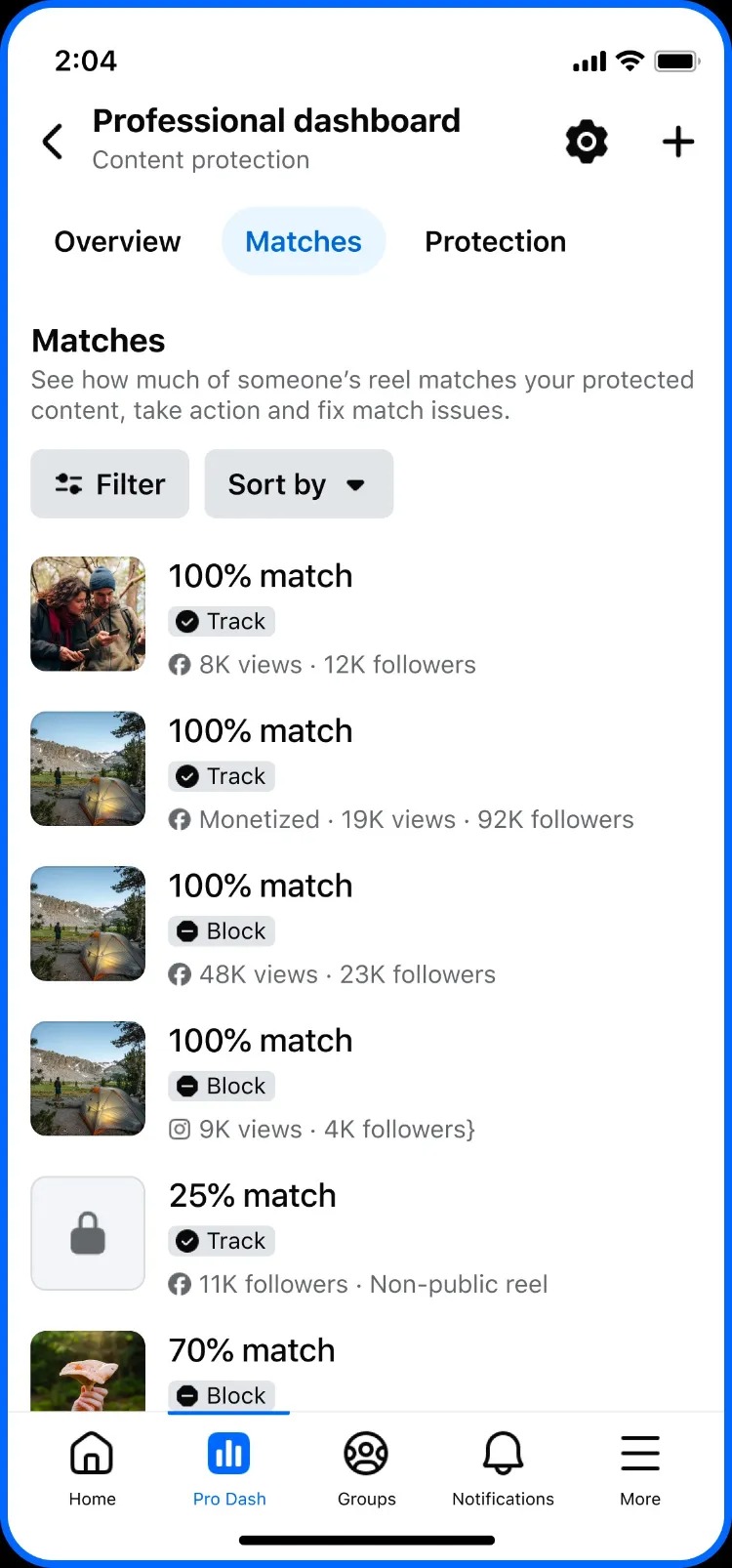 ابزار جدید از همان فناوری تطبیق متا در Rights Manager استفاده می‌کند و برای هر تطبیق، درصد شباهت و جزئیاتی مانند تعداد بازدیدها، شمار دنبال‌کنندگان و وضعیت کسب‌درآمد نمایش می‌دهد.