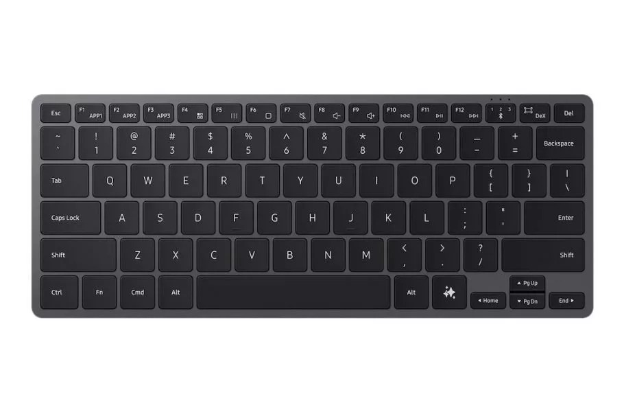 این کیبورد فلزی دارای دکمه‌های اختصاصی هوش مصنوعی و DeX برای دستگاه‌های گلکسی است.