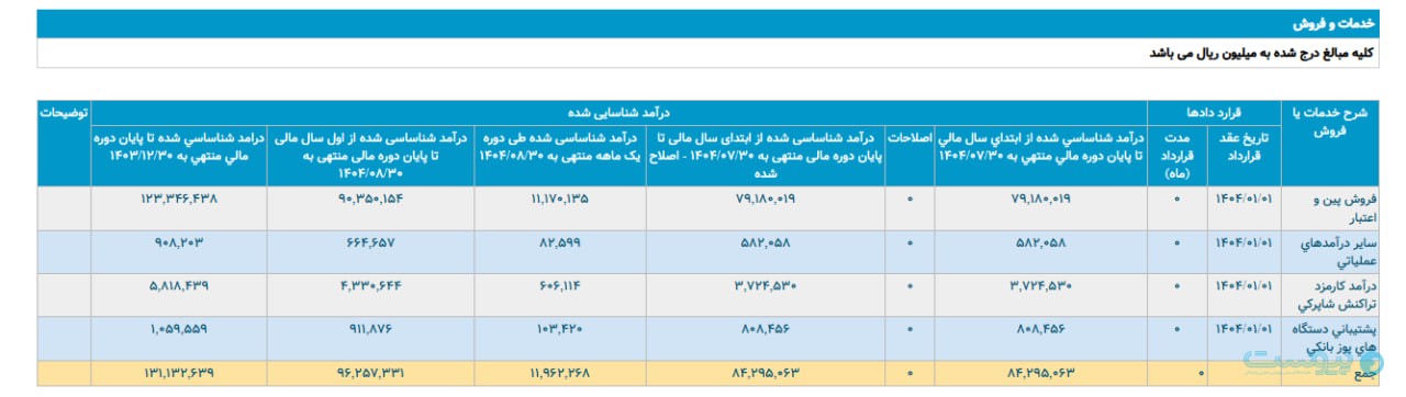 براساس صورتمالی منتشر شده، بیش از ۸ میلیارد تومان، آورده مالی متعلق به سایر درآمدهای عملیاتی این شرکت در آبان ماه است.
