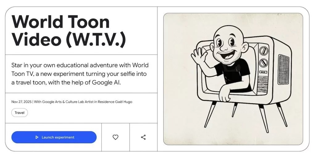 اولین قابلیت جدید Arts & Culture گوگل، «World Toon Video» نام دارد. کافی است یک سلفی بگیرید و استایل مورد نظر خود (مثل عروسکی یا کارتونی) را انتخاب کنید. هوش مصنوعی گوگل چهره شما را به آن سبک تبدیل میکند و در یک کلیپ ویدیویی کوتاه قرار میدهد. این کلیپ فقط سرگرمکننده نیست؛ بلکه شخصیت کارتونی شما در محیطهای مختلف حرکت میکند و یک درس کوتاه علمی یا تاریخی به شما میدهد.