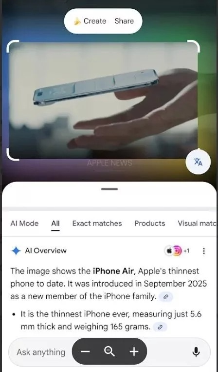 به گزارش PhoneArena، تا پیش‌ازاین اگر بعد از جستجوی اولیه Circle to Search، سؤال دیگری داشتید باید به نوار جستجوی بالای صفحه می‌رفتید. اما در نسخه بتای جدید، گوگل ویژگی AI Mode را اضافه کرده است. وقتی دور سوژه خط می‌کشید، یک پنل جدید باز می‌شود که شامل بررسی اجمالی هوش مصنوعی (AI Overview) است و توضیحاتی درباره آن آیتم می‌دهد. مهم‌تر از آن، یک نوار جستجو در پایین صفحه اضافه شده که روی آن نوشته شده: Ask anything (هر چیزی بپرسید).