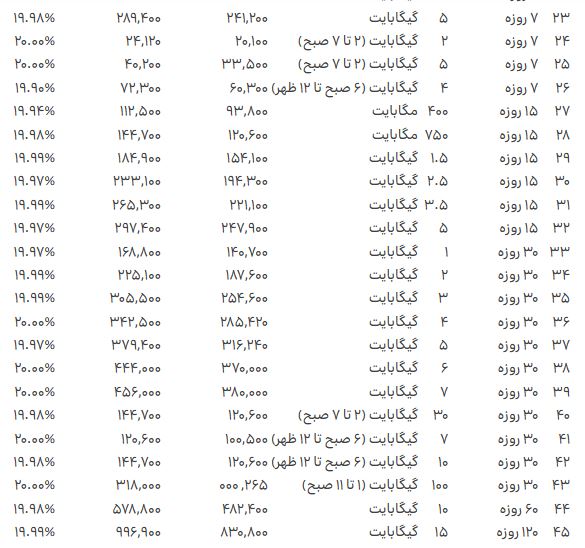 جدول مقایسه قیمتهای قدیم و جدید بستههای اینترنت همراه
