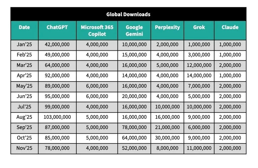 دادههای تازه از مؤسسه Sensor Tower حاکی از آن است که اگرچه ChatGPT همچنان بر بازار هوش مصنوعی سلطه دارد، اما رقبای سرسختی مثل جمینای گوگل و Perplexity با سرعتی خیرهکننده درحال کمکردن فاصله هستند.