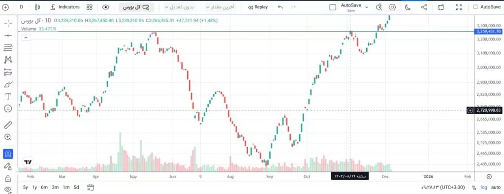 شاخصکل بازار سرمایه روز شنبه ۱۵ آذر ۱۴۰۴ با عبور از سطح ۳ میلیون و ۴۲۸ هزار واحد، رکورد تازهای ثبت کرد.