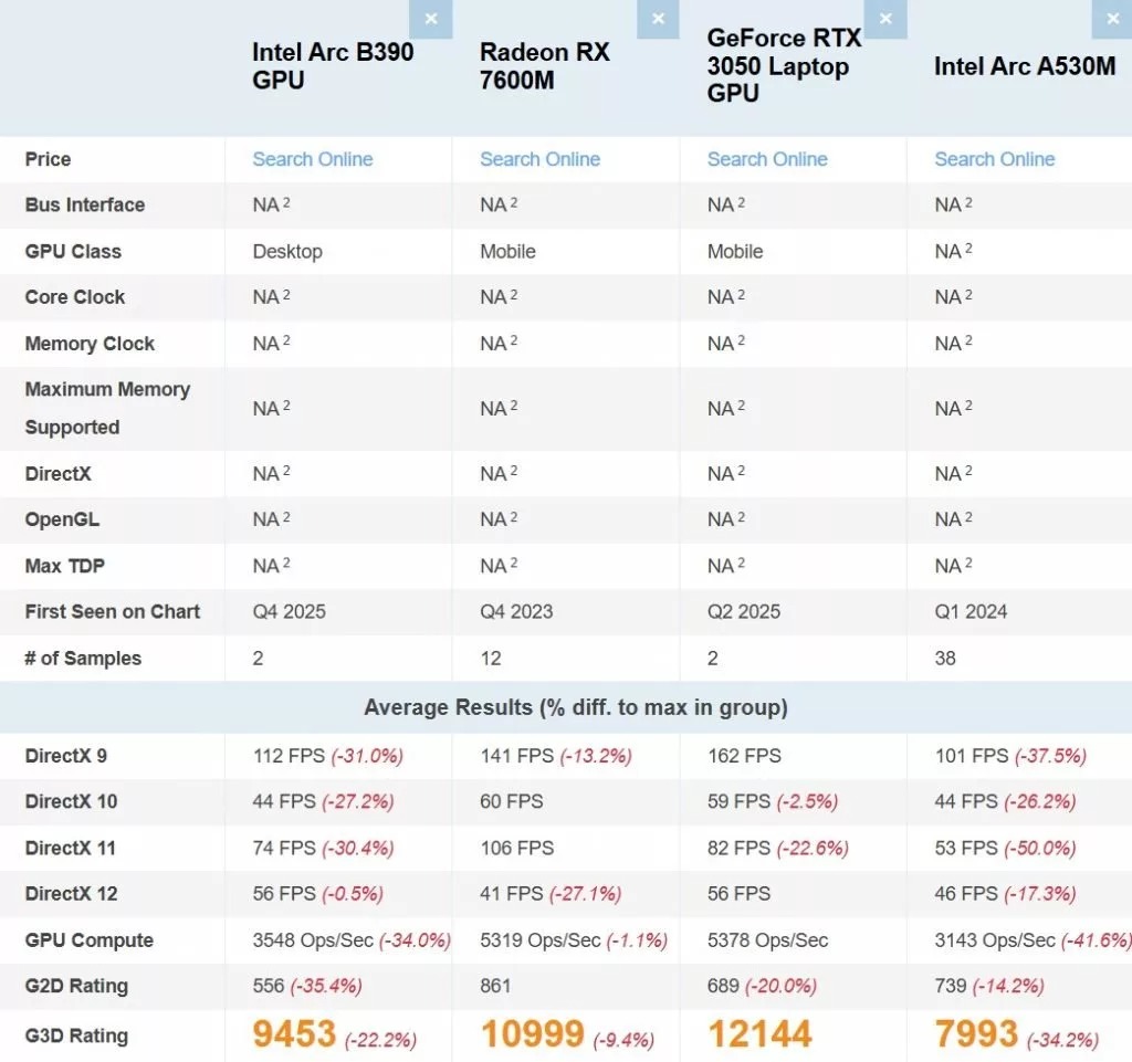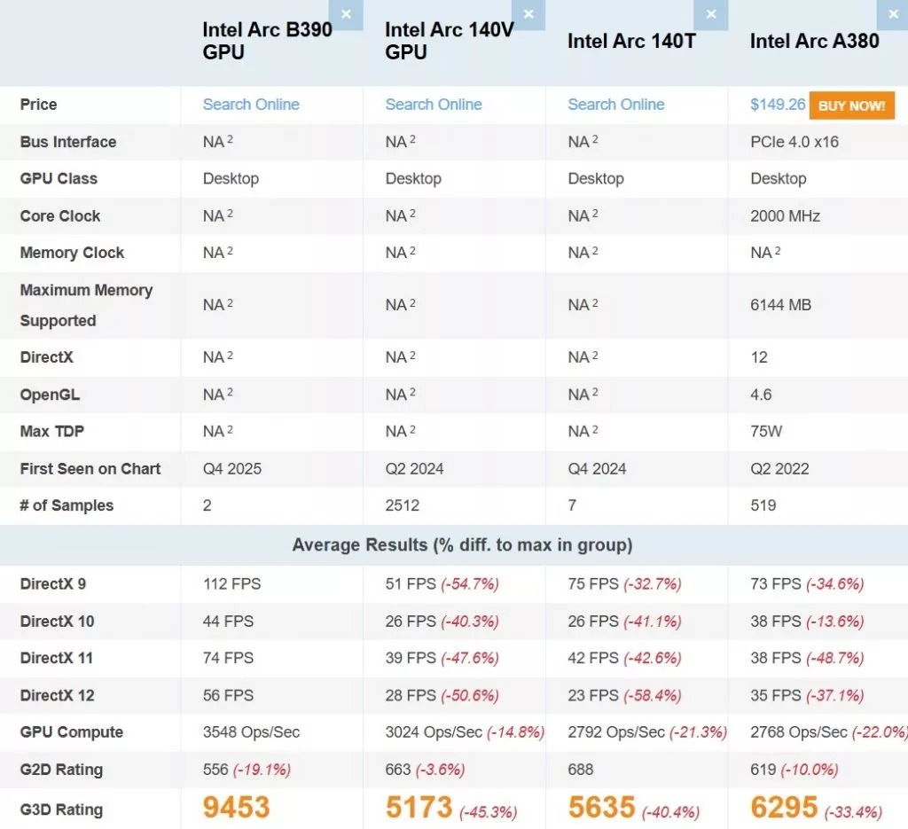 افشای بنچمارکهای جدید کارت گرافیک مجتمع اینتل Arc B390