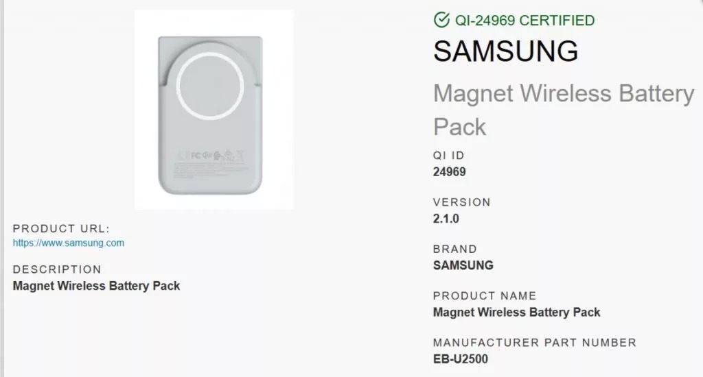 پک باتری EB-U2500 سامسونگ با گواهی Qi2 در پایگاه داده Wireless Power Consortium ثبت شد.