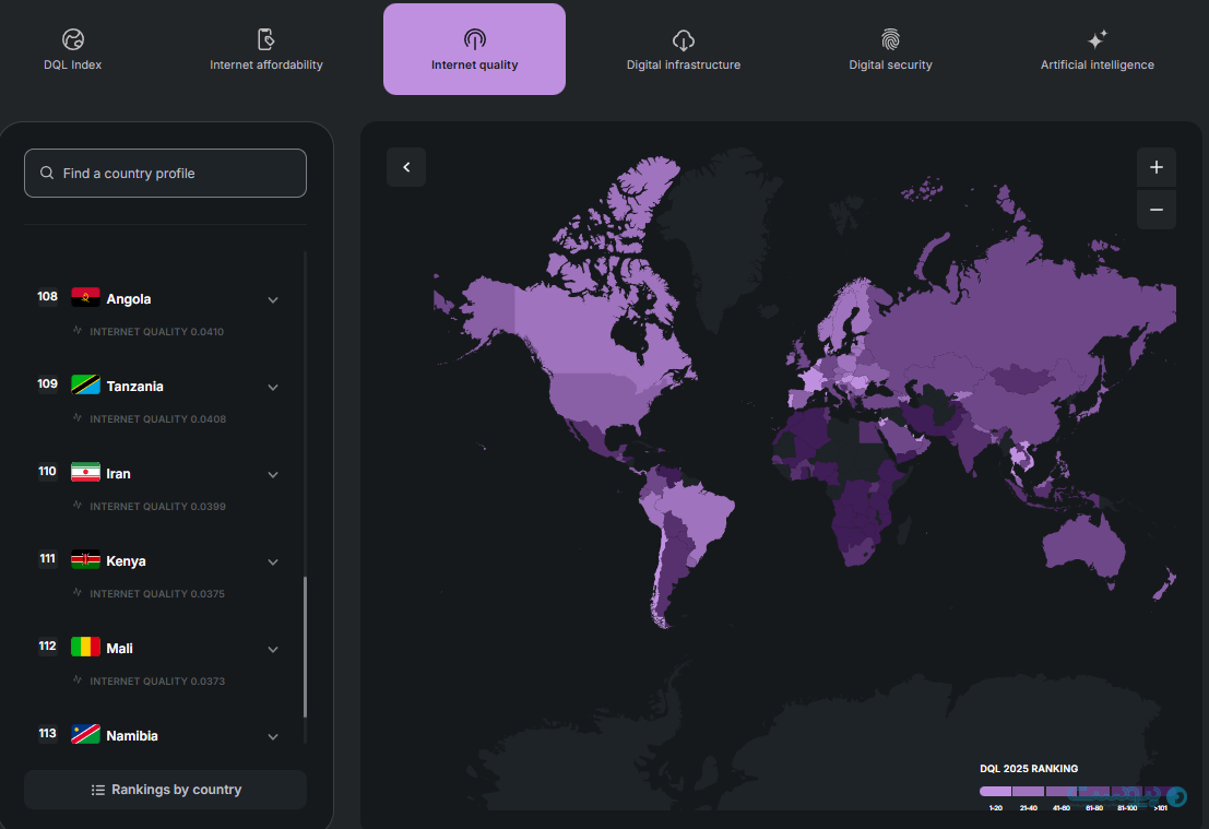 شاخص کیفیت زندگی دیجیتال Surfshark: ایران در رتبه ۱۱۰ از میان ۱۲۱ کشور