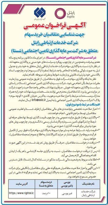 بر اساس این آگهی، شستا در نظر دارد سهام خود در رایتل را به‌صورت بلوکی، یکجا و از طریق مزایده عمومی به اشخاص واجد شرایط، به‌صورت منفرد یا کنسرسیوم، واگذار کند.