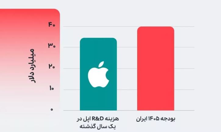 بودجه ۱۴۰۵ ایران با حدود ۴۰ میلیارد دلار، کمتر از هزینه سالانه تحقیقوتوسعه اپل است.
