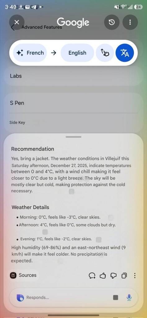 در تازه‌ترین آزمایش‌ها، کاربران مشاهده کرده‌اند که نسخه 4.0.50.4 Bixby قادر است به سؤالات دقیق مربوط به وضعیت هوا پاسخ دهد؛ قابلیتی که در نسخه‌های قبلی وجود نداشت. این به‌روزرسانی نشان‌دهنده پیشرفت چشمگیر بیکسبی در ارائه اطلاعات دقیق و کاربردی است و آن را به رقیبی جدی برای جمینای تبدیل می‌کند. حضور این ویژگی در نسخه بتای One UI 8.5 نشان می‌دهد که سامسونگ مراحل آماده‌سازی و آزمایش آن را پیش از عرضه رسمی سری گلکسی S26 با سرعت دنبال می‌کند.