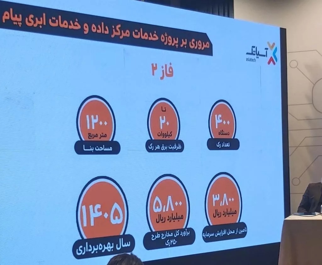 محمدعلی یوسفیزاده، مدیرعامل آسیاتک، در جریان مجمع گزارشی از عملکرد این شرکت ارتباطی ارائه کرد. به گفته وی مرکز داده پیام قرار است به ایجاد و توسعه زیرساخت هوش مصنوعی کمک کند. تحقیق و توسعه زیادی نیز در این زمینه در داخل شرکت انجام شده است.