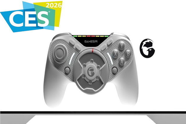 یک دسته بازی جدید در نمایشگاه CES 2026 معرفی شده که دارای یک فرمان با قابلیت بازخورد نیرو در وسط آن است.