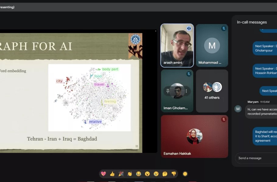 صبح امروز پرتال خبری دانشگاه شریف مطلبی از وبینار مشترک هوش مصنوعی بین دانشگاه بغداد و دانشگاه صنعتی شریف منتشر کرد. طبق تصاویر منتشر شده، این وبینار در بستر گوگل میت برگزار شده است.