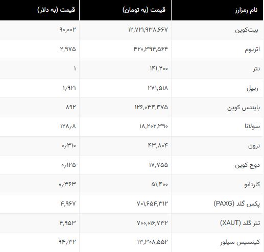 در این مقاله قیمت روزانهی ارزهای دیجیتال مهم را بهنقل از صرافیهای داخلی لیست کردهایم تا کار سادهتری در دنبالکردن قیمت داشته باشید.