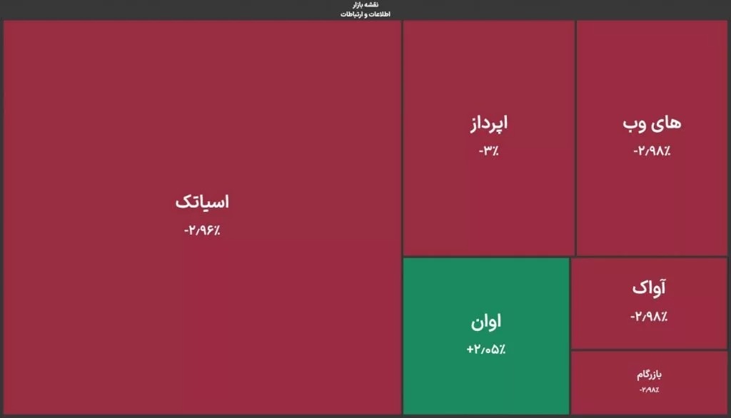 در صنعت اطلاعات و ارتباطات، که شرکتهای ارائه دهنده خدمات اینترنتی نیز در آن جای میگیرند، آسیاتک با کاهش ۲.۹۶ درصدی قیمت مواجه شد و معاملات اوان با رشد ۲.۰۵ درصدی همراه بود.