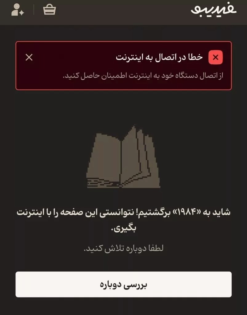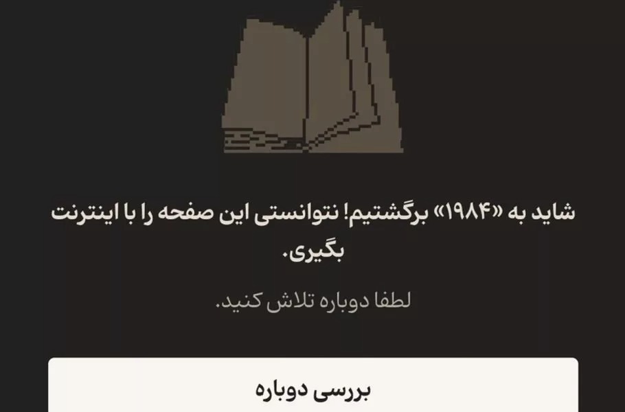 در تصویری که کاربران از صفحه آفلاین فیدیبو منتشر کردهاند، جمله «شاید به ۱۹۸۴ برگشتیم!» دیده میشود؛ عبارتی که اشارهای مستقیم به رمان «۱۹۸۴» نوشته جورج اورول دارد؛ اثری که به نماد هشدار درباره کنترل اطلاعات، نظارت دائمی و محدودسازی آگاهی عمومی تبدیل شده است.