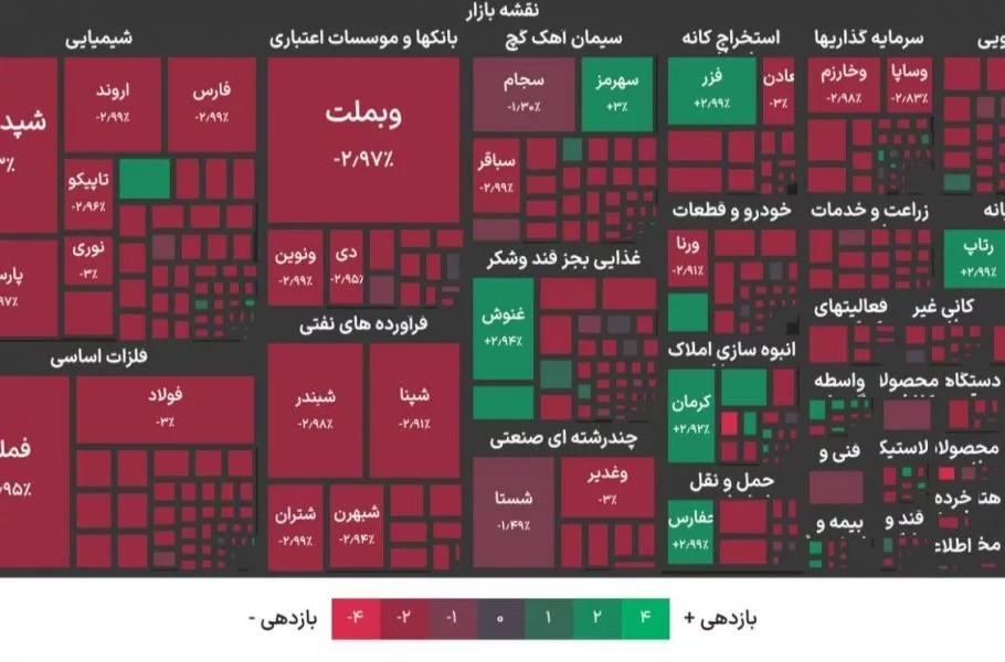 امروز ۸۸ درصد از نمادهای بازار منفی معامله شدند.