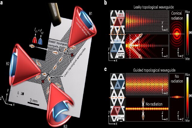 گروه سینگ برای مقابله با این چالش، به حوزه فوتونیک توپولوژیک روی آوردند که ساختارهای مصنوعی عامل حرکت نور در مسیرهای محافظتشده را بررسی میکنند. پژوهشگران با الگودهی دقیق مواد میتوانند دستگاههای فشردهای بسازند که در آنها امواج الکترومغناطیسی در حال حرکت حتی هنگام عبور از گوشههای تیز، در برابر پراکندگی و نقص محافظت میشوند. آنها برای مهار این اثرات، یک تراشه سیلیکونی طراحی کردند که با آرایهای از سوراخهای مثلثی در دو اندازه متفاوت ۹۹ و ۲۶۴ میکرومتر سوراخ شده بود.