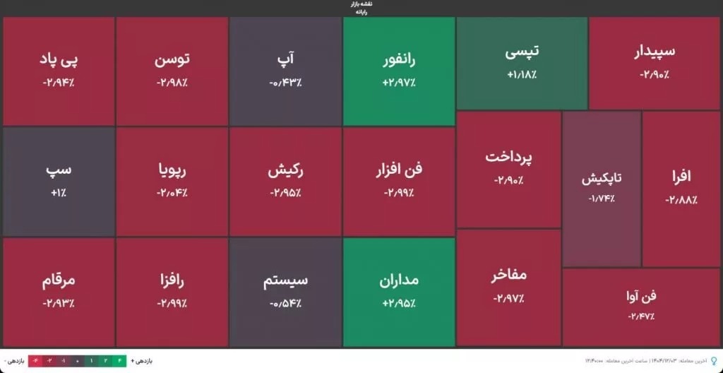 در گروه رایانه، تنها نمادهای تپسی، رانفور و مداران در محدوده مثبت معامله شدند.