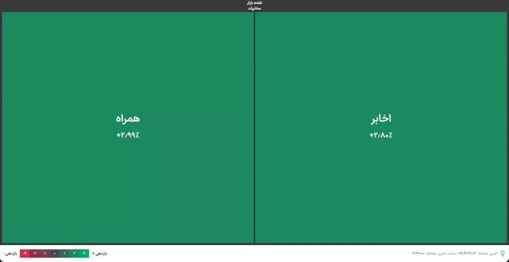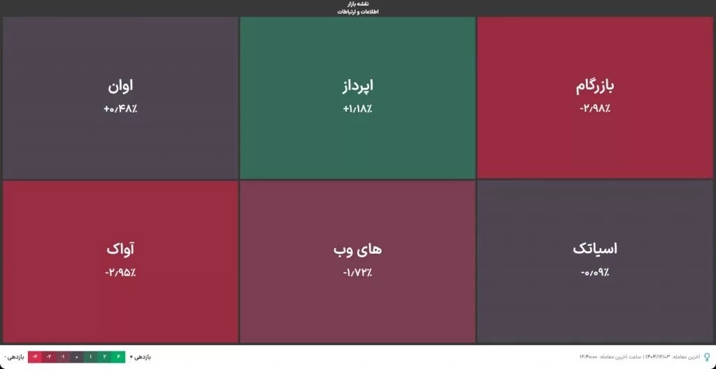همچنین در گروه اطلاعات و ارتباطات، تنها نماد اپرداز در محدوده مثبت و دیگر نماد‌ها در محدوده منفی معامله شدند.