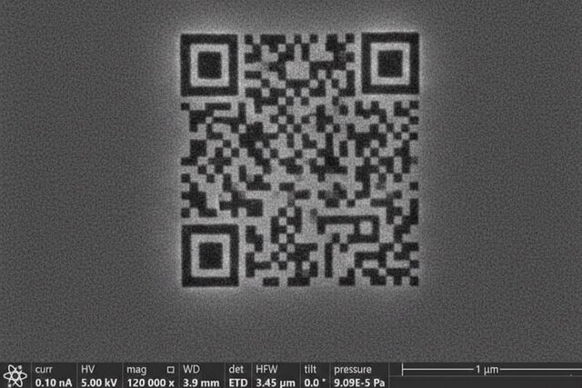 پژوهشگران با استفاده از پرتوهای یونی متمرکز، کیوآرکد را درون یک لایه نازک سرامیکی حک کردند. اندازه هر پیکسل این کد تنها ۴۹ نانومتر است؛ یعنی حدود ۱۰ برابر کوچکتر از طول موج نور مرئی. از این رو، جزئیات آن با نور معمولی قابل تفکیک نیست؛ همانگونه که نمیتوان با کفی ضخیم پای یک فیل، برجستگیهای خط بریل را لمس کرد. اما زیر میکروسکوپ الکترونی، این کد بهطور کامل و قابلاعتماد خوانده شد.