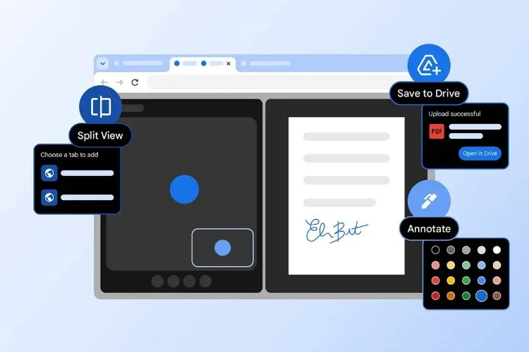 بهروزرسانی کروم که هماکنون درحال انتشار است، سه قابلیت کلیدی جدید ارائه میدهد: Split View برای نمایش همزمان دو صفحهی وب در یک پنجره، ابزار داخلی حاشیهنویسی و امضای فایلهای PDF، و گزینهی جدید ذخیره در گوگل درایو (Save to Google Drive) برای سازماندهی بهتر فایلها.